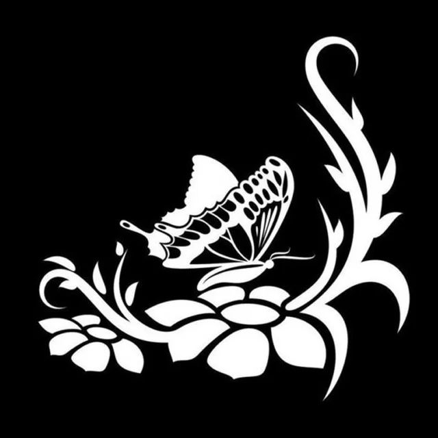 15.2*15CM Beautiful Butterfly Flower Car Sticker Stylish Motorcycle Vinyl Decals Black/Silver S7