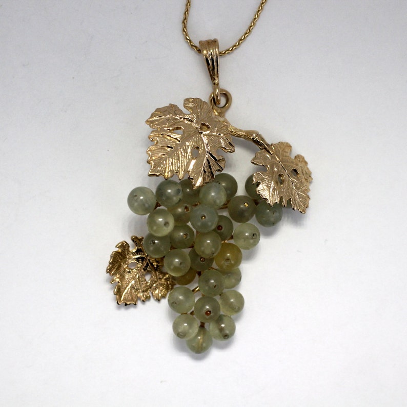 Grape Jewelry Grape Cluster Necklace Three Leaf 14kt Gold Etsy