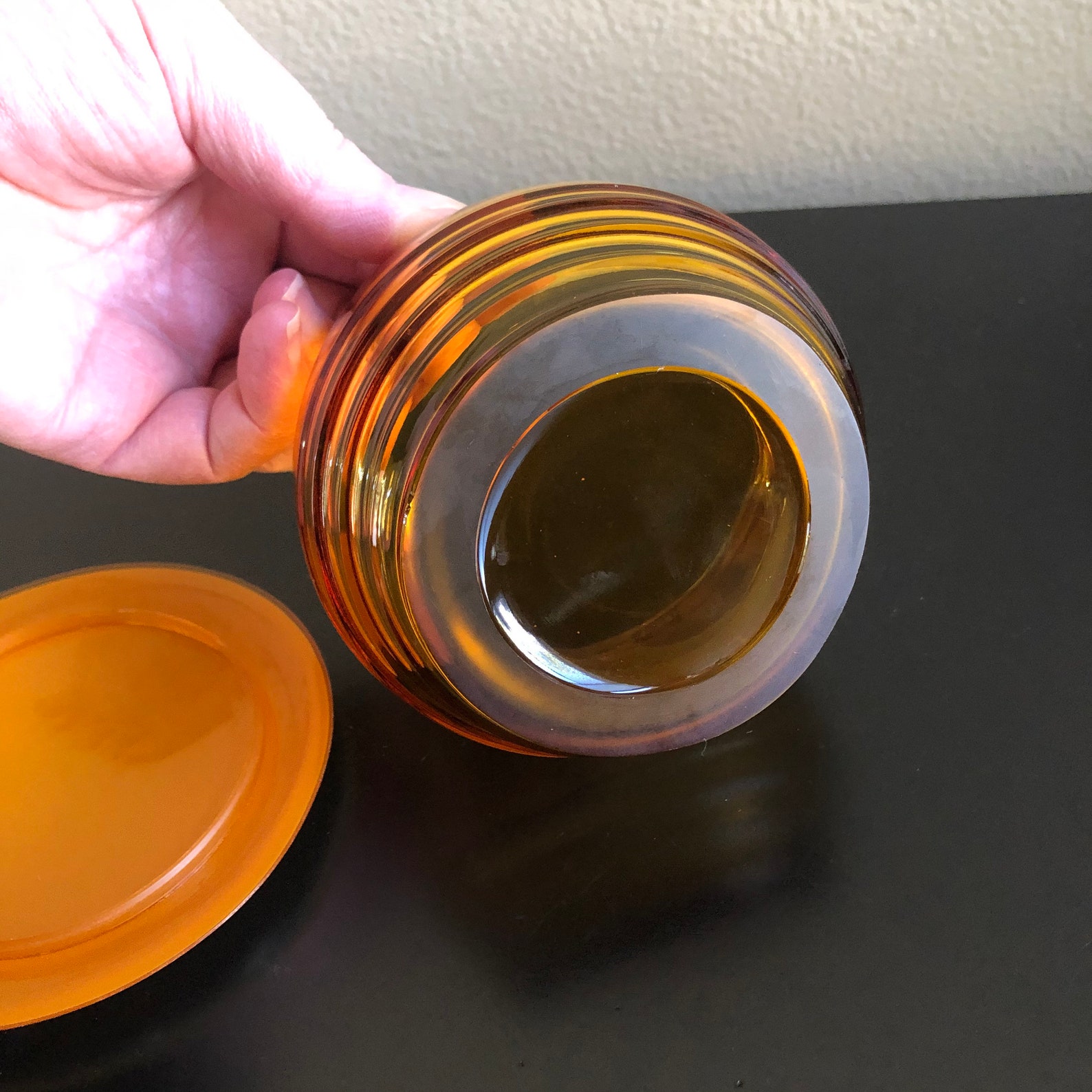 Vintage Amber Glass Vanity Jar with Lid Amber Glass Powder Etsy