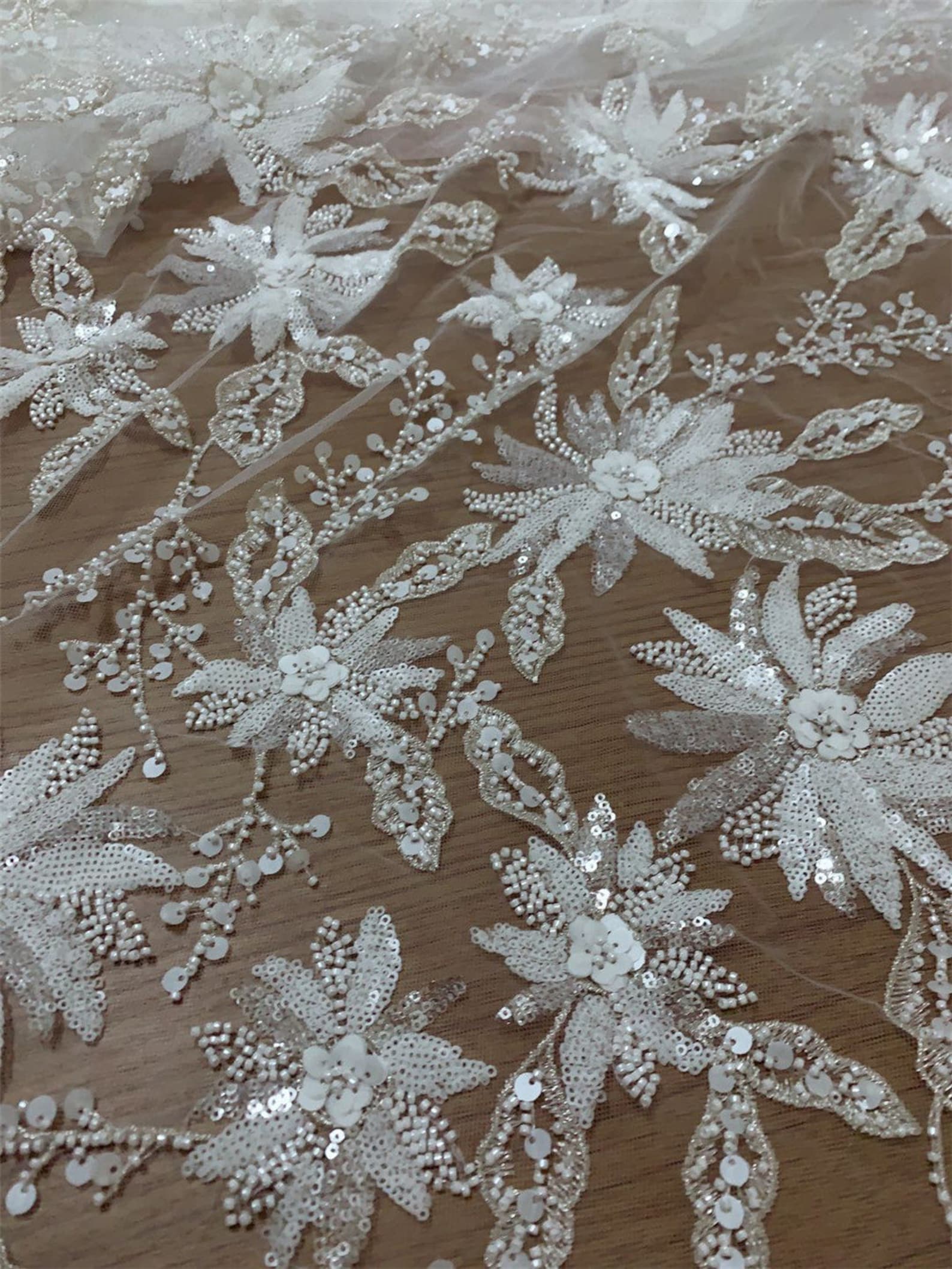 Luxury 3D beaded haute couture fabric lace by yard bridal Etsy
