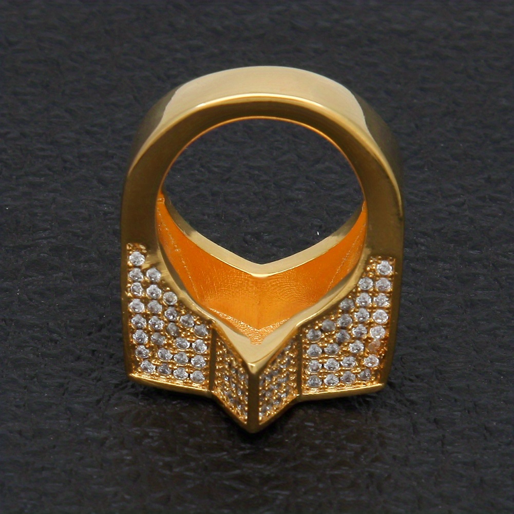 Men's Zircon Pentagram Hip Hop Ring Copper Golden Plated Temu
