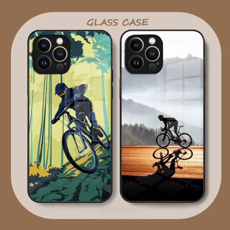 Bike Bicycle Cycling Art Phone Case Tempered Glass For IPhone 15 12 14