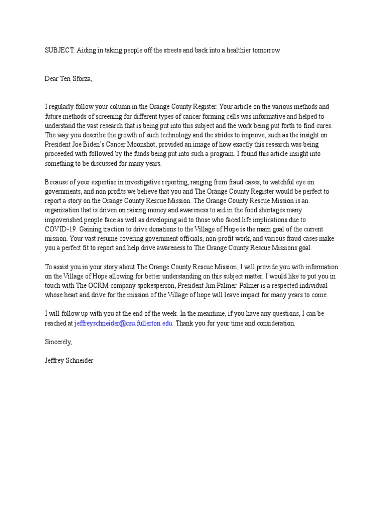 email pitch assignment PDF