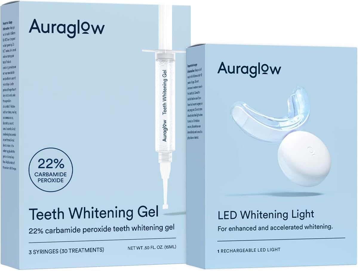 Auraglow 22 Teeth Whitening Gel & LED Teeth Whitening