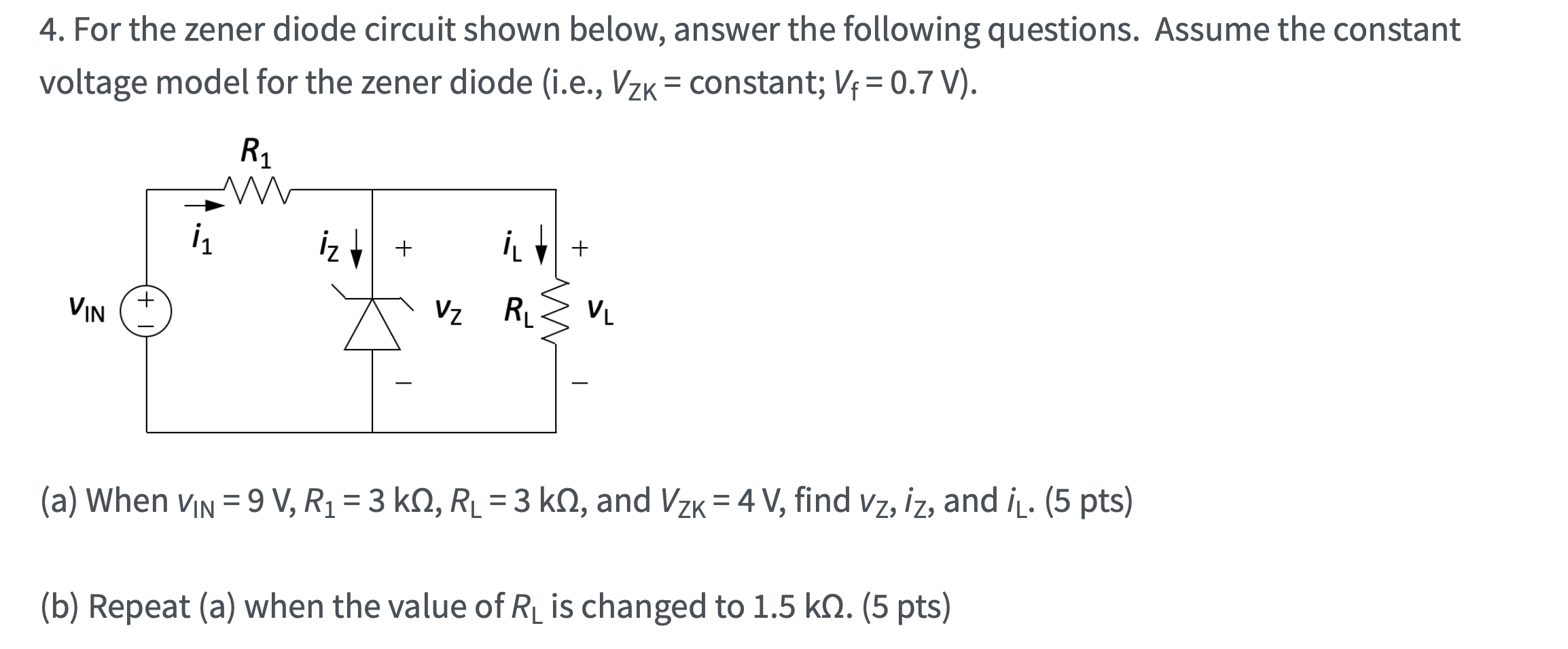 Solved 4. For the zener diode circuit shown below, answer