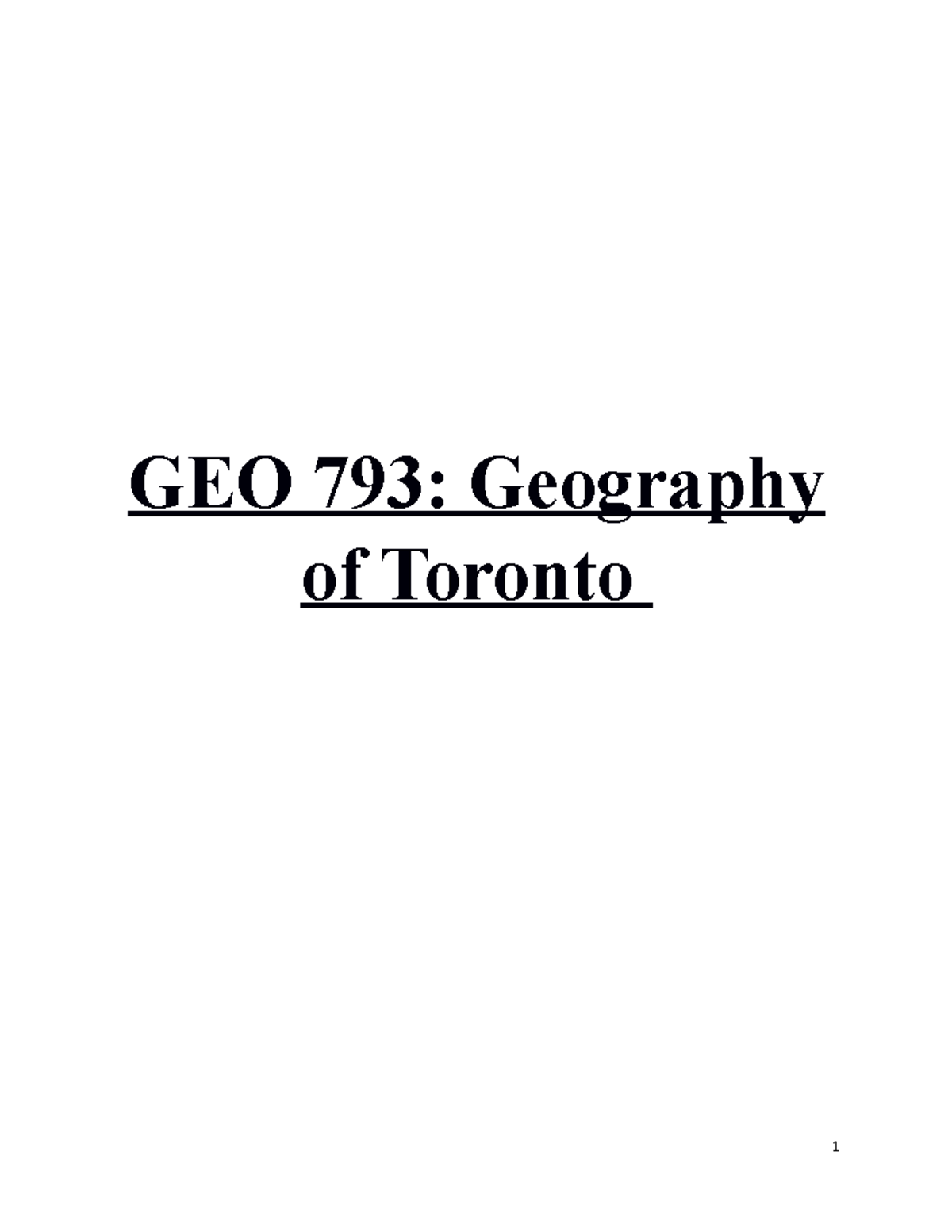 GEO 793 notes GEO 793 Geography of Toronto Table of Contents GEO 793