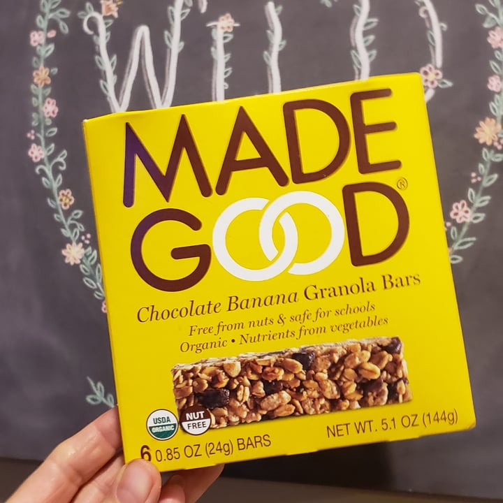 Made Good Chocolate Banana Granola Bars Review abillion Made Good Chocolate Banana Granola Bars Everything you love about a good granola bar and more! Choose from same day delivery, drive up or order pickup. Contain nutrients of a full serving of vegetables; Madegood is dedicated to creating peanut. Contains nutrients from vegetables extracts. Plus, every bar is certified organic, contains nutrients from vegetable extracts, and are free from the most common allergens. Gluten free. Made Good Chocolate Banana Granola Bars.