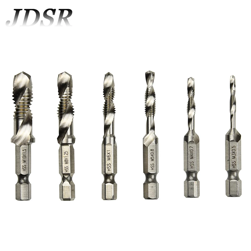 JDSR 6Pcs HSS Hex Shank Titanium Plated Screw Screw Thread Metric Tap