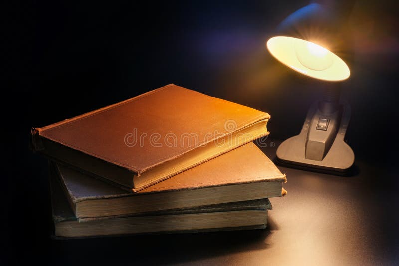 Table Lamp Lighting Books on the Table. Education Concept Stock Image
