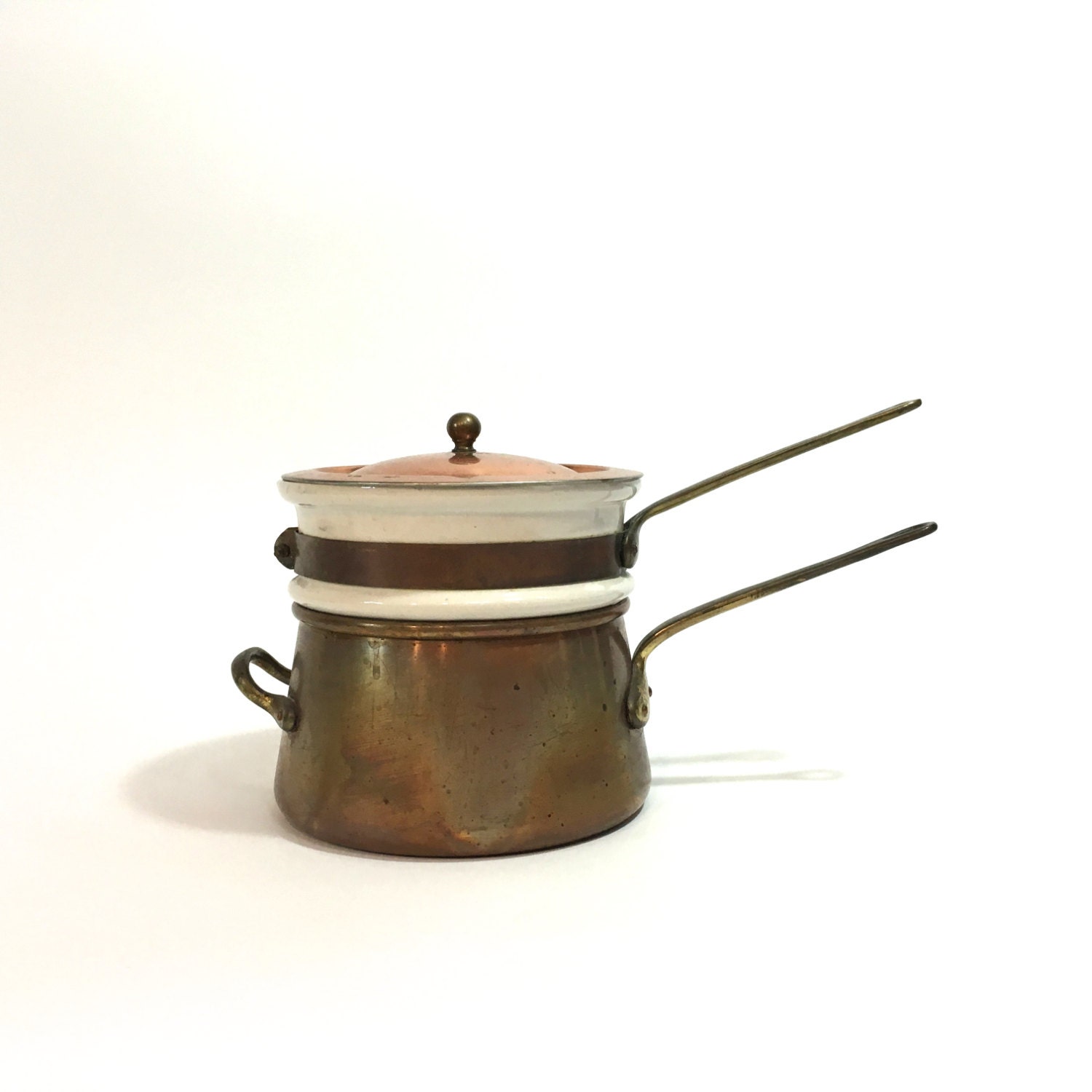 Vintage Copper And Ceramic Double Boiler by TheGlassLily on Etsy Double Boiler Ceramic The main difference is in the terminology: Fill the bottom pot with one to two inches of water and place a cookie cutter into it. Then, put some wax pellets, chunks, or. According to bon appétit, a double boiler is used anytime gentle heat is required.because the boiling water in the lower pot is heated directly instead of the food,. Double Boiler Ceramic.