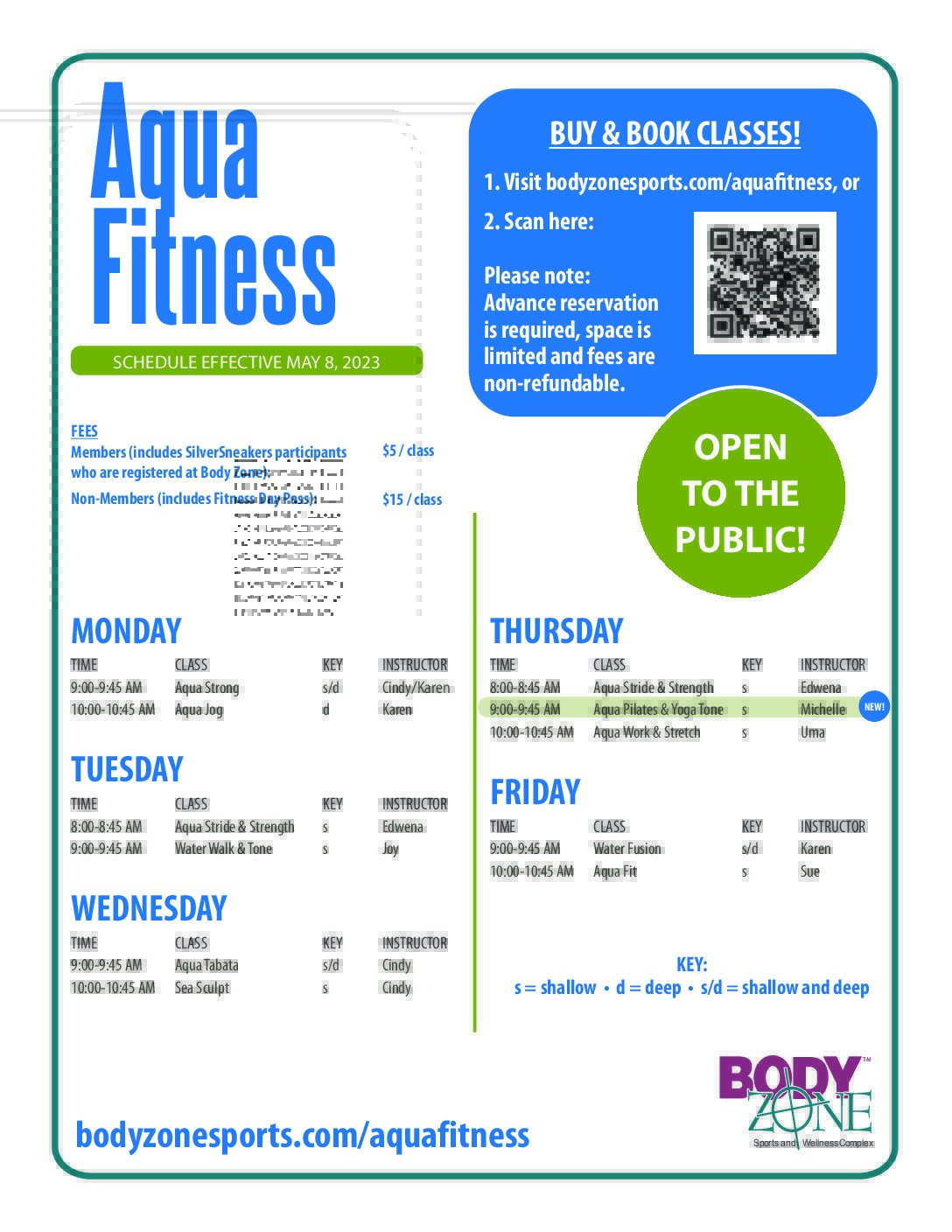 AQUA FITNESS SCHEDULE MAY 8 2023 final Body Zone Sports and
