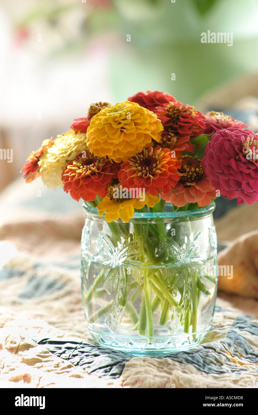 Colorful Zinnias in Vase Stock Photo Alamy