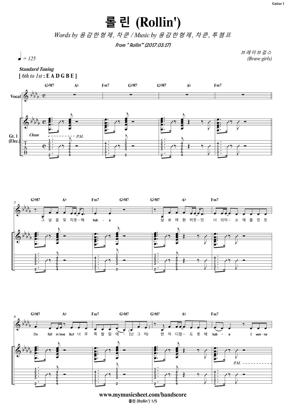 Brave Girls Rollin' Guitar / Backing Track Sheet