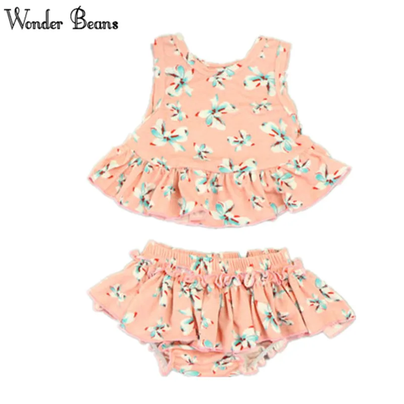 2pcs Newborn Baby Girl Clothes Summer Sleeveless Ruffled Floral Vest