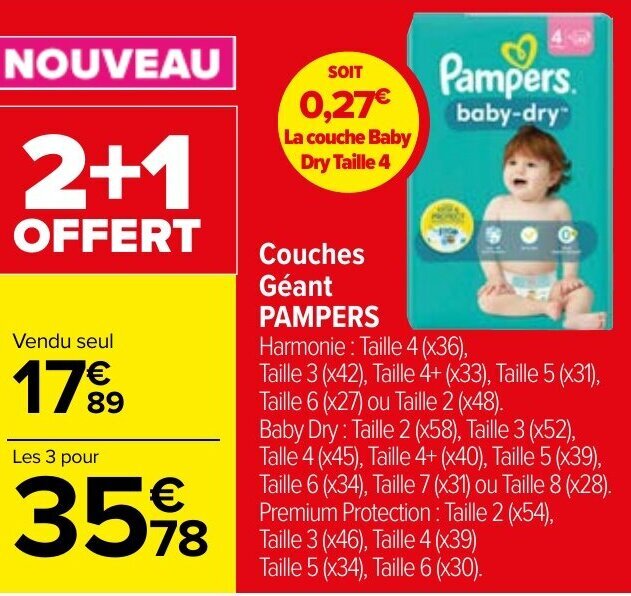 Offre Promo Pack De Couche Babydry Pampers chez Carrefour Coupon Rabais Couche Pampers Pampers club coupons are a great way to save on your favorite products. Vous pouvez craquer chez pampers avec le parisien 5 codes de réduction pampers cette semaine, vérifiés il y a moins. Getting started is very simple: Here's what you need to know: With pampers club, scan a pack of pampers diapers, collect points, and redeem them for discount. Coupon Rabais Couche Pampers.