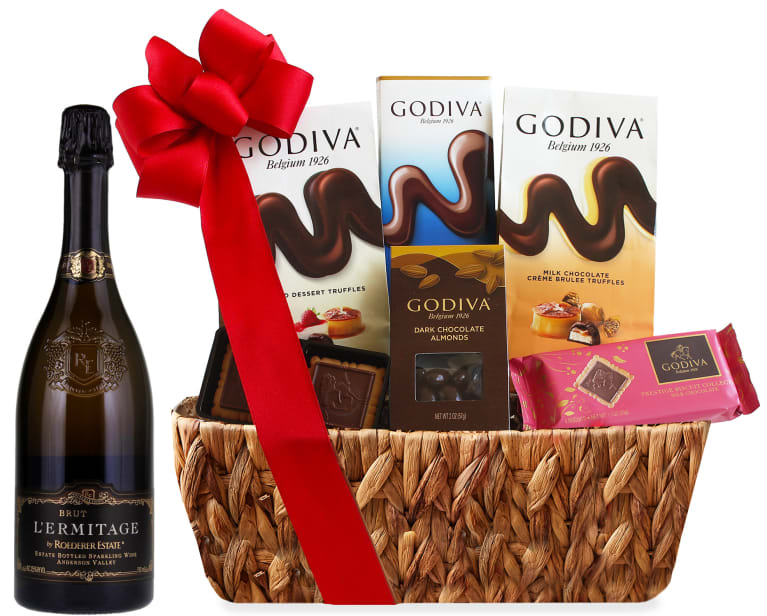 Roederer Sparkling Wine & Godiva Chocolates Gift Basket