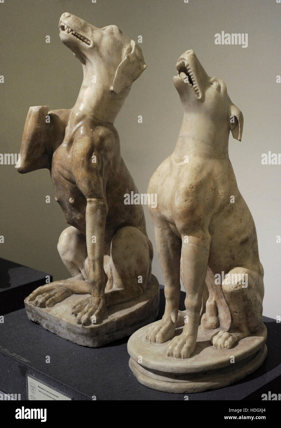 Roman art. Statues. Dogs crouching. Roman Imperial Age. National Archaeological Museum, Naples