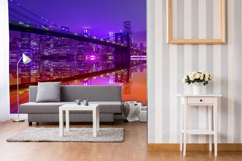 3D Huge Bridge Night City A395 Removable Wallpaper Self Etsy