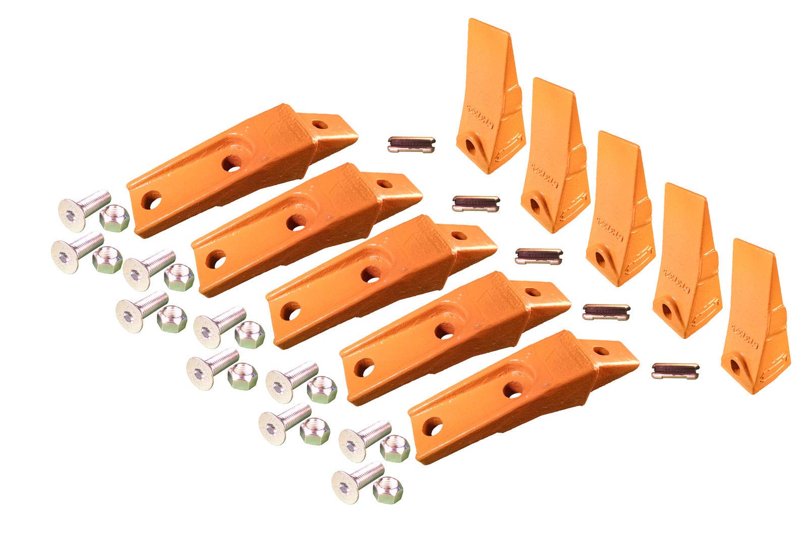 5 Bobcat Style Skid Steer Bucket Teeth w/Bolt On Shanks, Pins