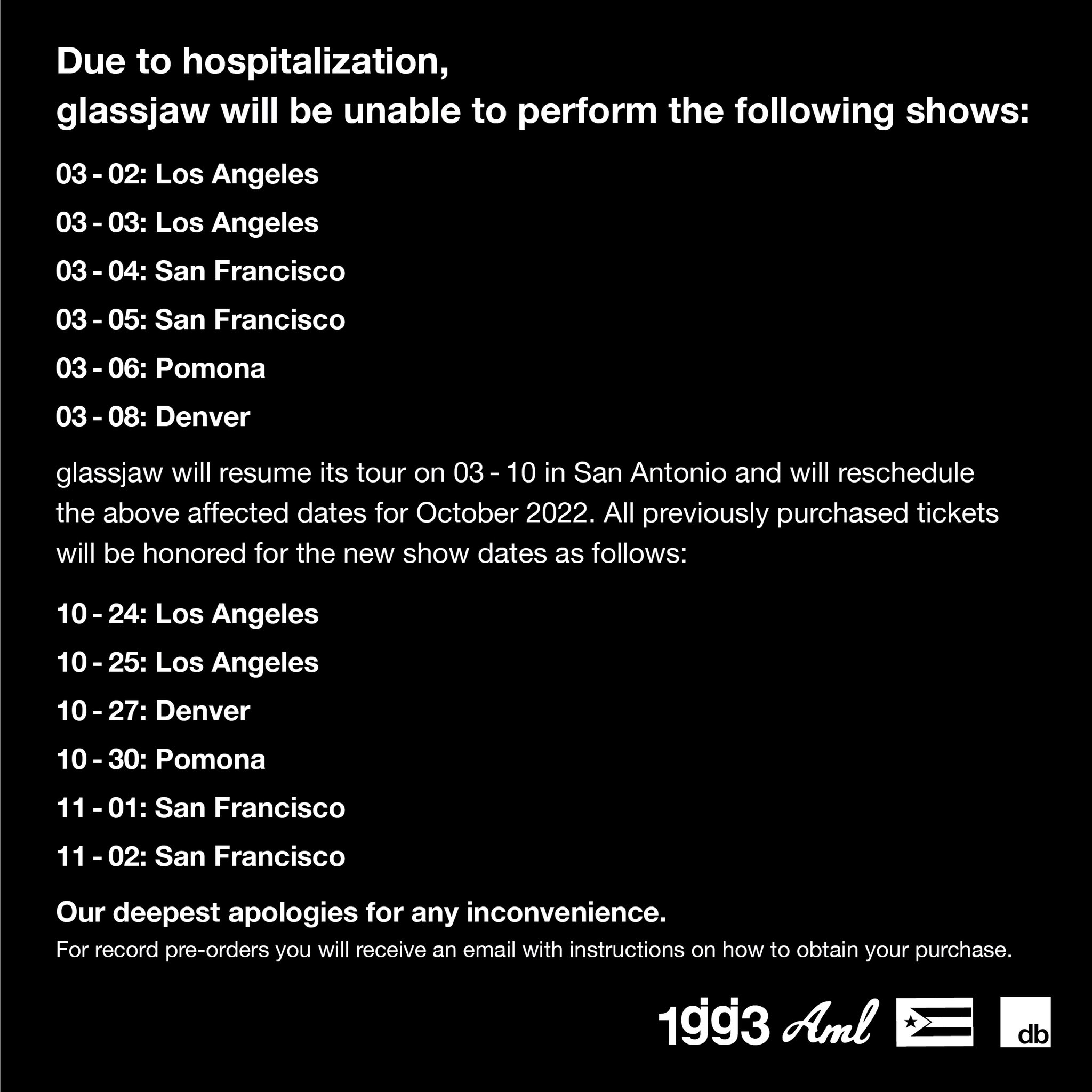 glassjaw on Twitter "our deepest apologies for any inconvenience.…