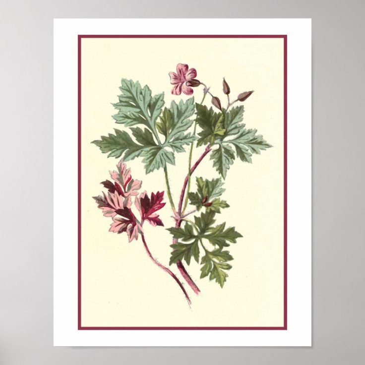 "Herb Robert" Botanical Illustration Poster Zazzle