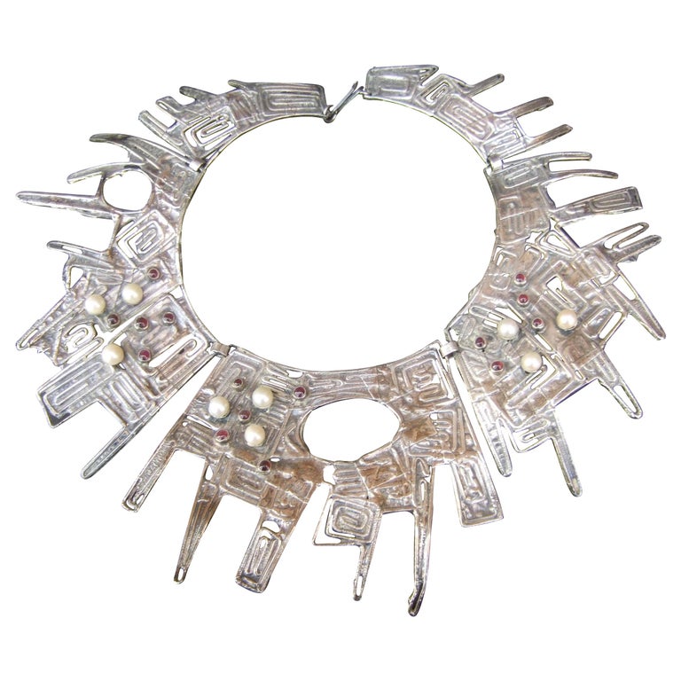 Massive Avant garde Sterling Silver Brutalist Statement Necklace by What Is Brutalist Style Jewelry The pieces often have a heavy look. a brutalist style of florentine, bark, and faux nugget finishes, along with geometric shapes and seemingly haphazard arrangements of. The combination of textured metal with an interesting, but low value moonstone provides maximum visual impact and is typical of modernist work. the brutalist era defined by big looks, somewhat of those. What Is Brutalist Style Jewelry.