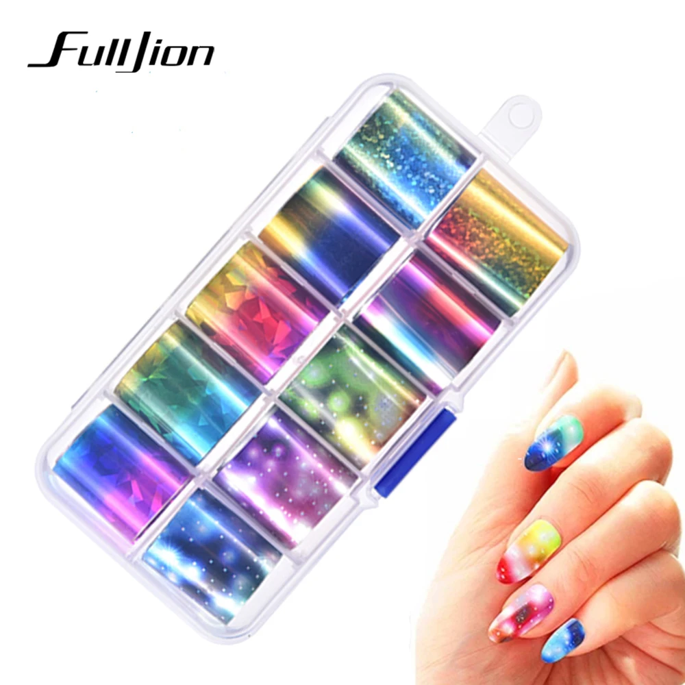 Fulljion 1Box Holographic Nail Foil Set Colorful Transfer Stickers
