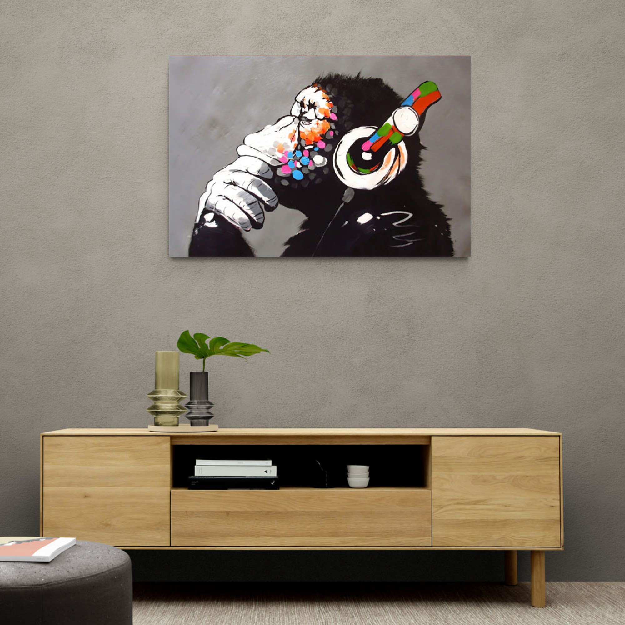 Dj Monkey Wall Art, Banksy Thinking Monkey, Dj Monkey Framed Canvas Dj Monkey Wall Art Encased in a bold black frame, the artwork. Banksy dj monkey wall art poster monkey with headphones canvas paintings wall art picture for living room home decoration. This stunning patrice murciano dj monkey framed print features the signature patrice murciano colour and technique. Schau dir unsere auswahl an dj monkey wall art monkey print an, um die tollsten einzigartigen oder. Dj Monkey Wall Art.