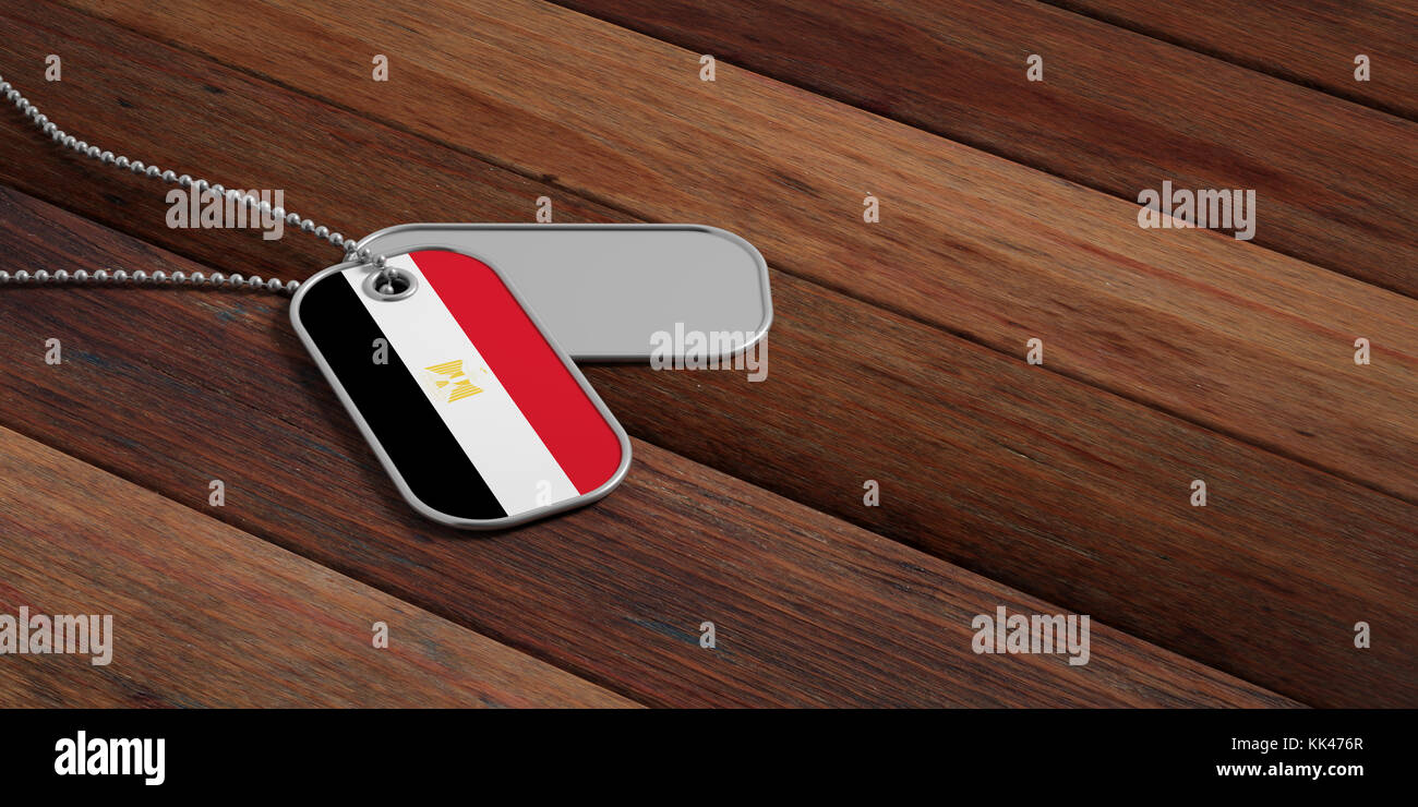 Egypt army concept, Egypt flag identification dog tags on wooden