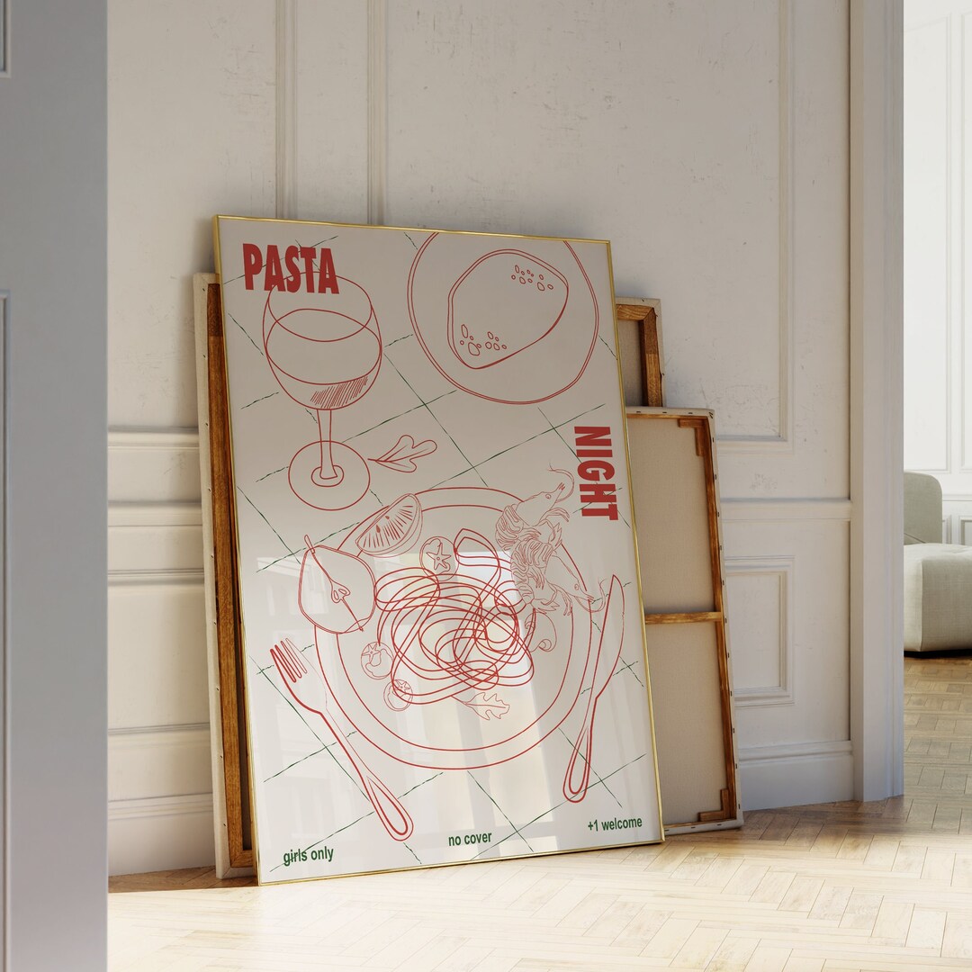 Pasta Poster, Quirky Kitchen Wall Art, Pasta Lovers Print Digital Wall