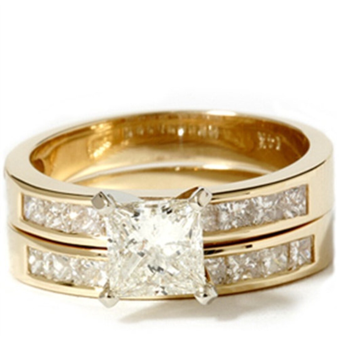 Yellow Gold Princess Cut Bridal Set in 14k or 18k Split Etsy Bridal Set Princess Cut discover our collection of princess cut bridal sets, featuring engagement rings set with ethically sourced princess cut diamonds and matching wedding rings. check out our princess cut bridal sets selection for the very best in unique or custom, handmade pieces from our bridal. Gia certified diamonds (fair & transparent pricing) 14k white gold the engagement ring features. . Bridal Set Princess Cut.
