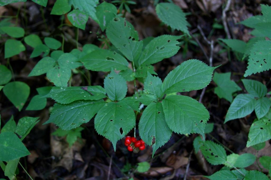 Wild Ginseng in August at Wild Ozark Wild Ozark Ginseng Nursery