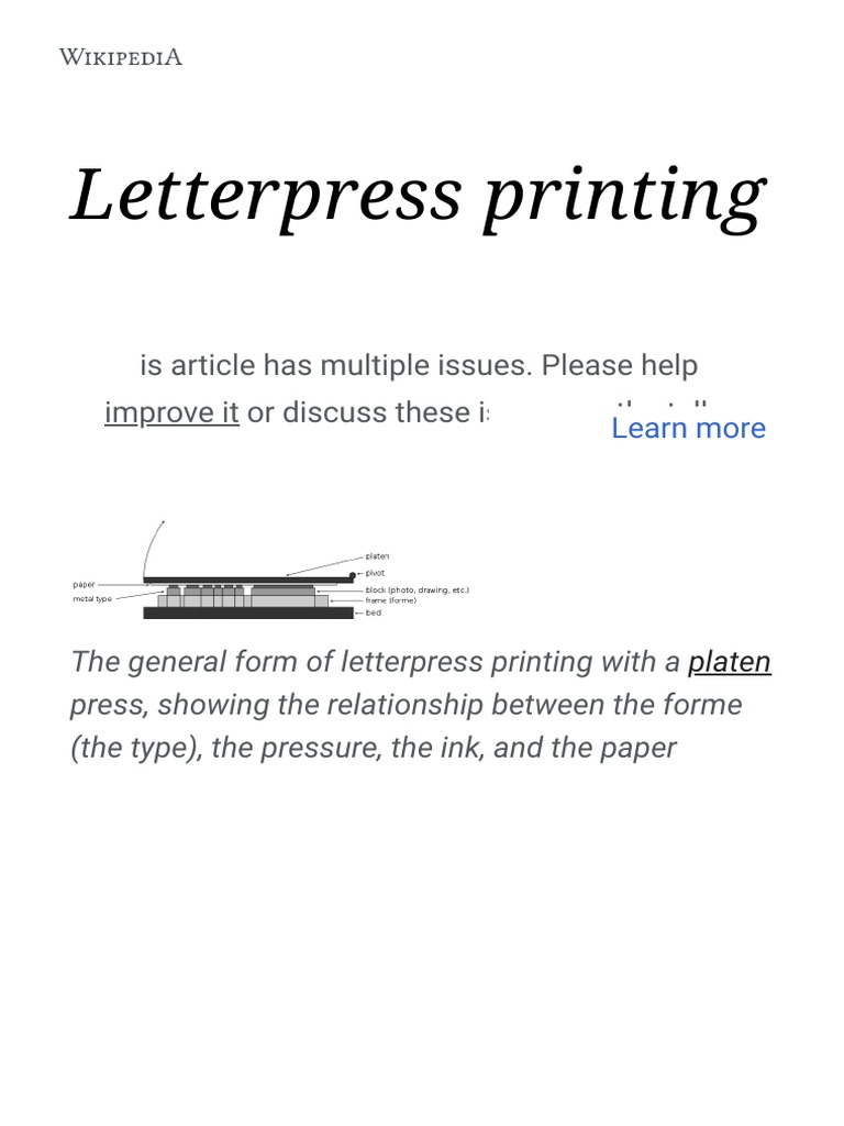 Letterpress Printing Wikipedia PDF Printing Printing Press