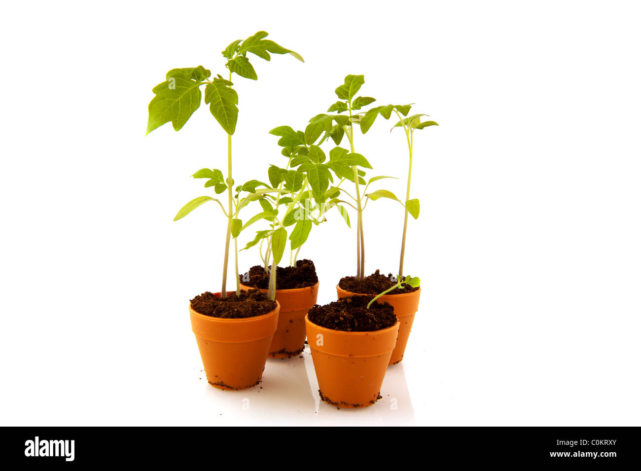 Young tomato plants in flower pots isolated over white Stock Photo Alamy
