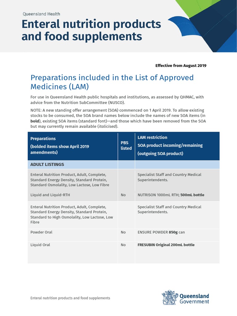 Enteral Nutrition Products and Food Supplements Preparations Included List Of Approved Medicines Qld about the list of approved medicines. a printable list of approved medicines (pdf 581 kb) is available. the list of approved medicines (lam) does not include all medicines listed in the pbs. queensland health list of approved medicines (lam) for use in queensland public hospitals with links to. You can search the lam by generic or. List Of Approved Medicines Qld.