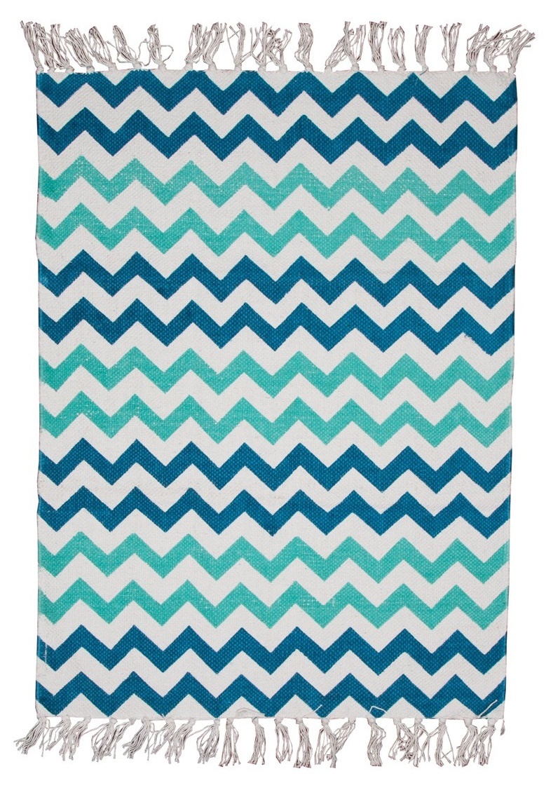 Chevron Rug With Tassel Fringe Blue at Mighty Ape NZ