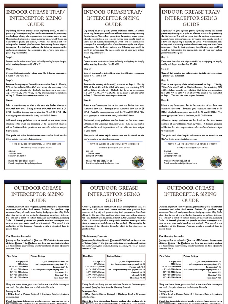 Grease Interceptor Sizing Guide 94200870413PM PDF Plumbing