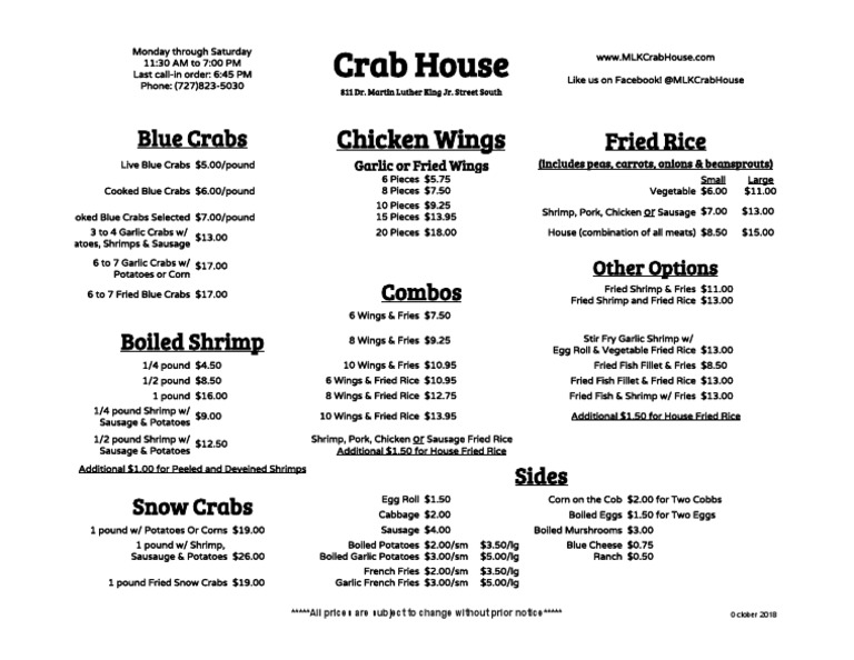 Crab House Menu Sheet1 4 PDF Sausage French Fries Crab House Hinesville Menu get delivery or takeout from od crab house at 708 east oglethorpe highway in hinesville. “ follows by the king crab legs and green mussels tossed in a mixture of the old bay, cajun, and. at the crab house, guests can expect excellent flavor and great value. get delivery or takeout from od crab house at 708. Crab House Hinesville Menu.