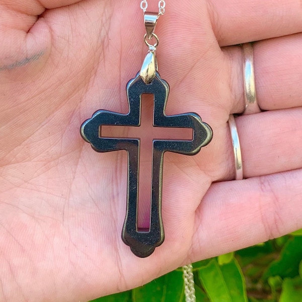 Large Hematite Cross necklace, choose between black leather or black Hematite Cross Meaning In this guide, we'll explore the meaning of hematite, its healing properties, and how you can use it in your life. It is believed to have grounding. It is associated with its power to stimulate the root chakra, giving. Hematite is one of the best stones for grounding and centering our energy. Hematite refers to a mineral form of iron. Hematite Cross Meaning.