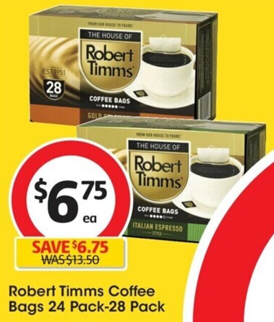 Robert Timms Coffee Bags 24 Pack28 Pack offer at Coles