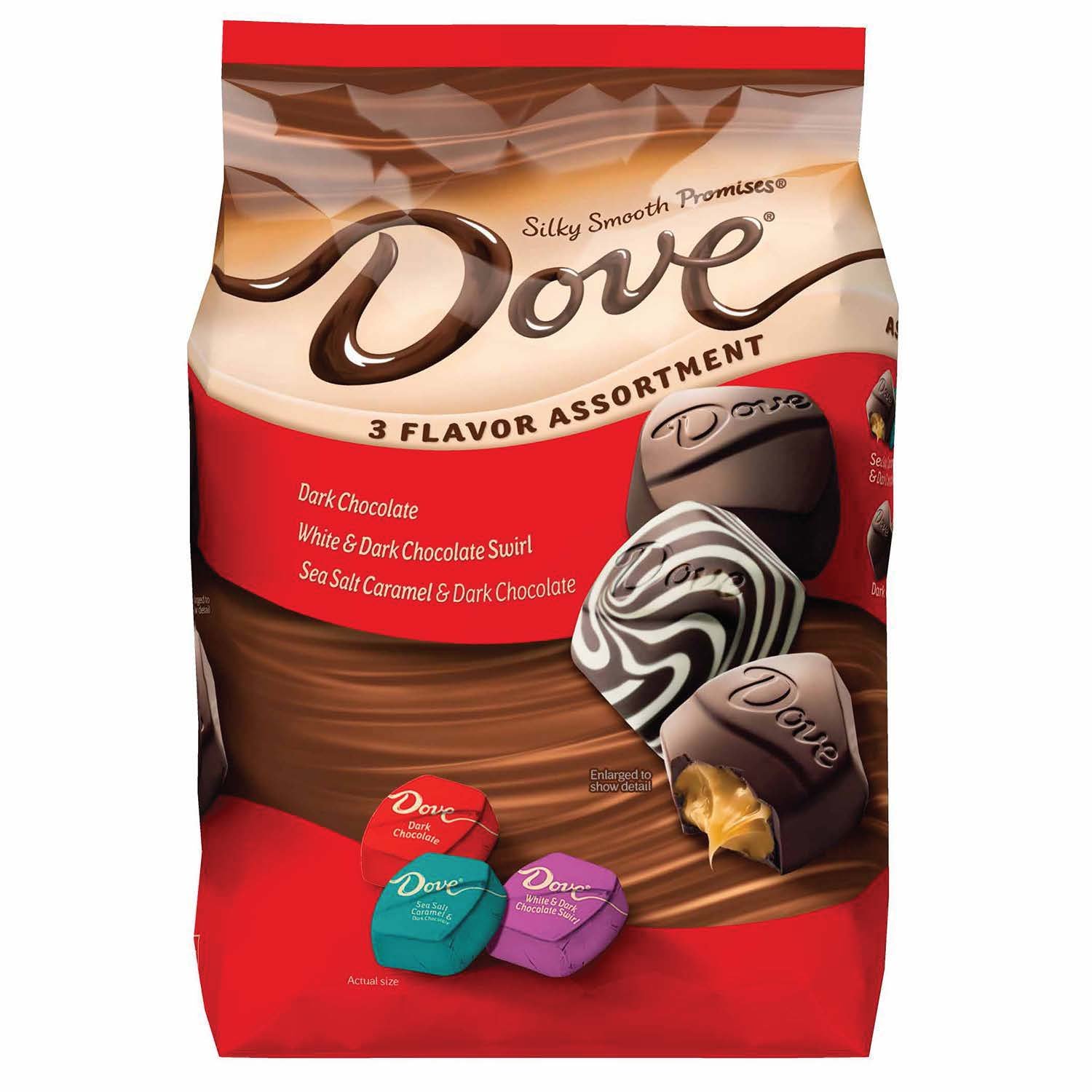 dove promises chocolate variety mix large bag, 14.08oz. made with only the finest cacao, dove promises silky smooth milk chocolate, dark chocolate & caramel chocolate candy variety bag is a treat that. not only will dove promises elegant foils make candy dishes pop, but their sweet affirmations tucked under each wrapper. Unwind and take a deep breath with.