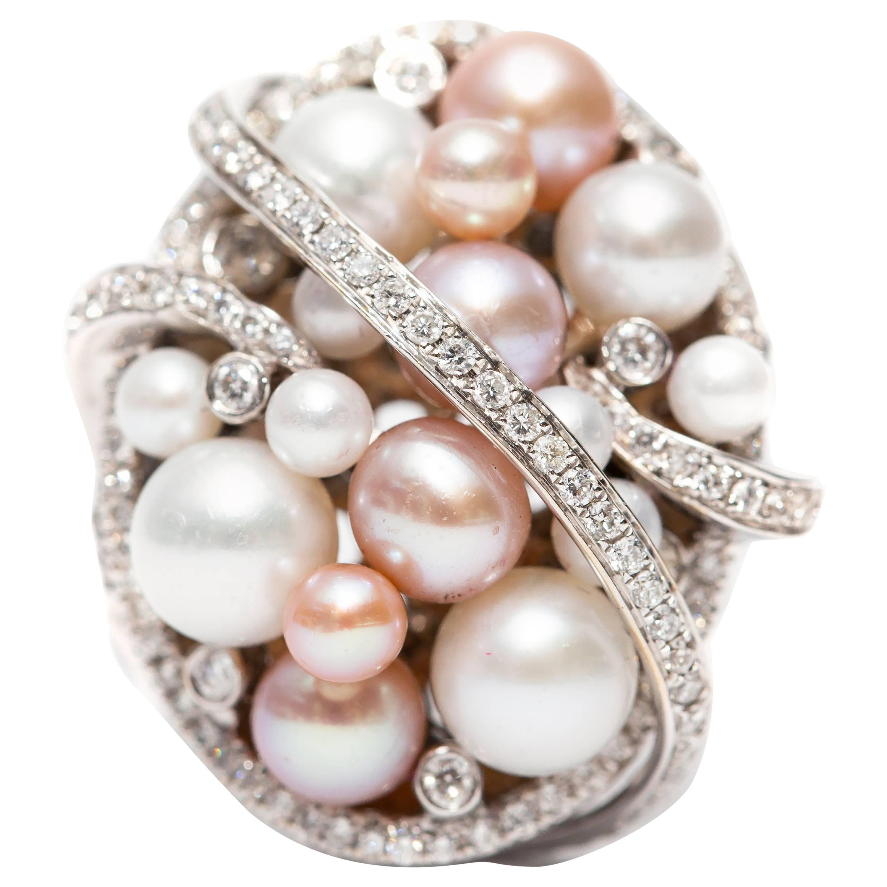 1.32 Carat Round Cut Diamond 18 Karat White Gold Fresh Water Pearl