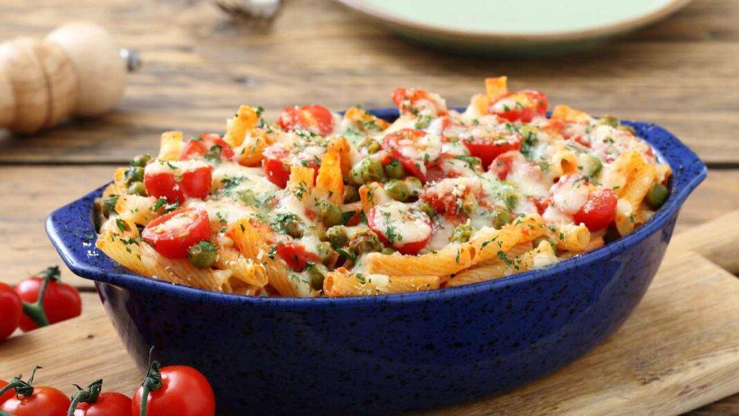 Pasta al forno con piselli e pomodori Perfetta per smaltire i piselli