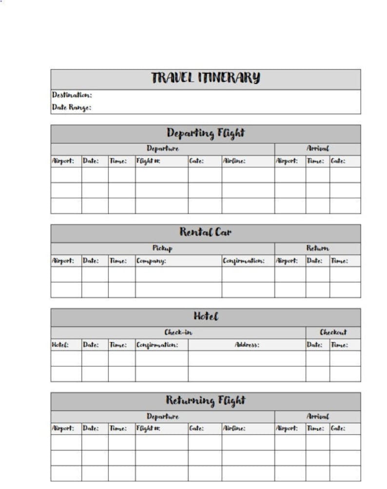 TRAVEL ITINERARY TEMPLATE Etsy