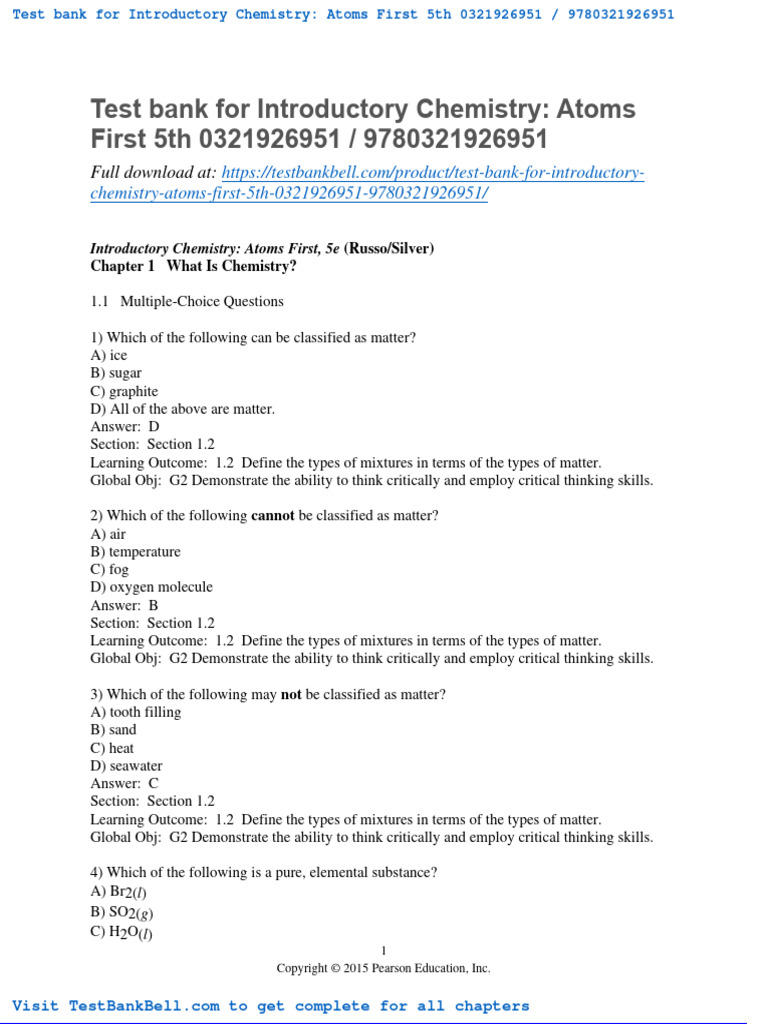 Test Bank For Introductory Chemistry Atoms First 5th 0321926951 9780321926951 PDF Mixture