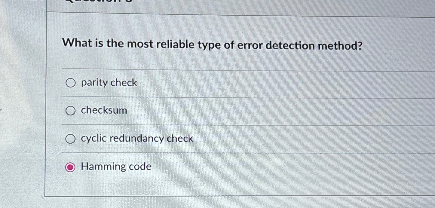 Solved What is the most reliable type of error detection