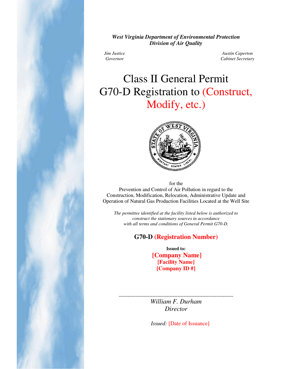West Virginia Class II General Permit G70d Registration Fill Out