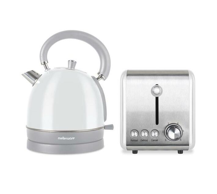 MELLERWARE PACK 2 PIECE SET STAINLESS STEEL WHITE KETTLE AND TOASTER