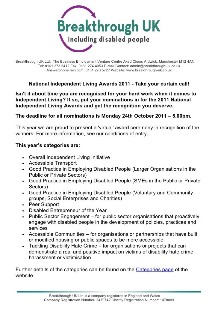 Breakthrough UK Awards Nomination invitation