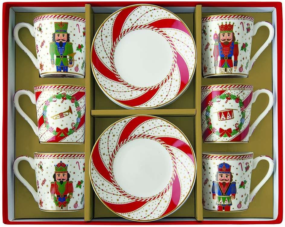 Easy Life Set of 6 Christmas Porcelain Espresso Cups with Nutcracker